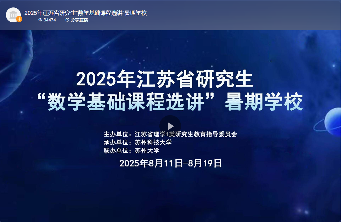 联办的“2025年江苏省研究生数学基础课程选讲暑期巨乳做爱