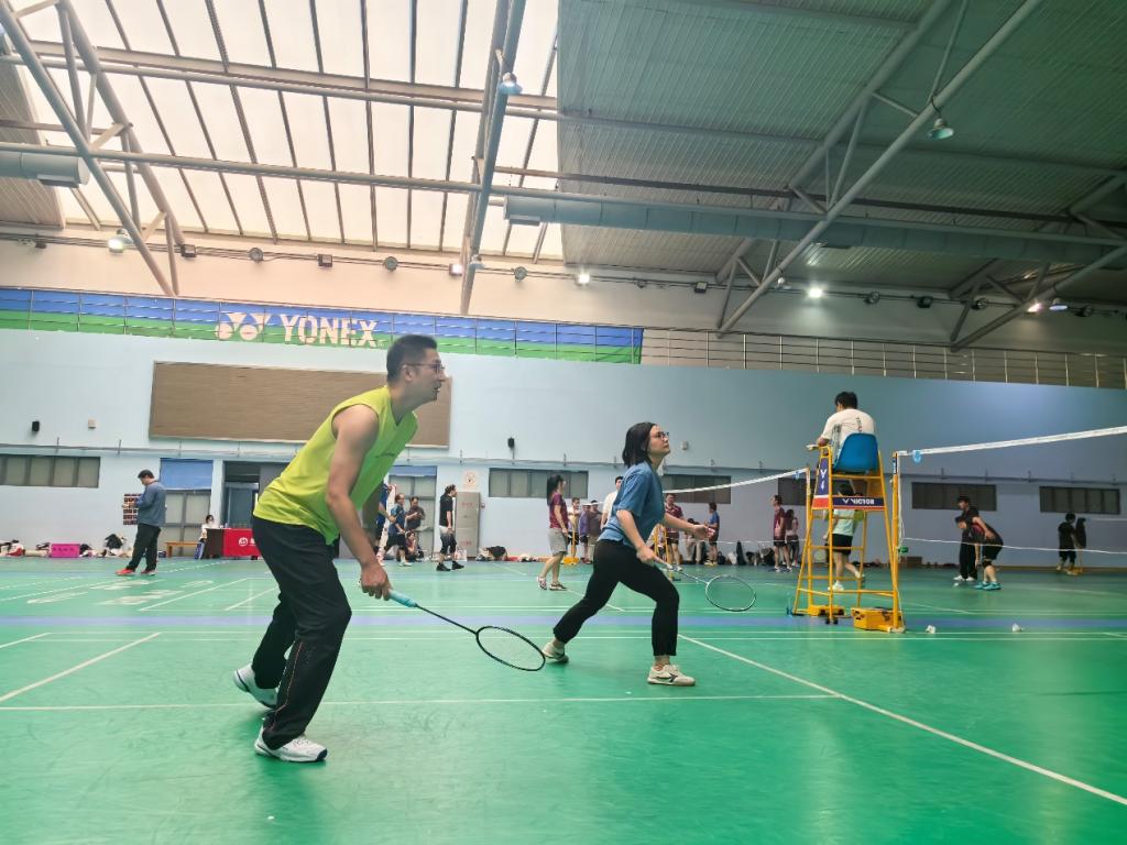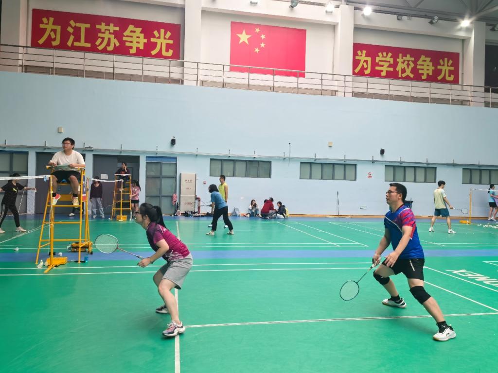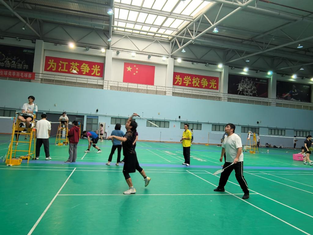 体育馆 2 楼联合举办教职工羽毛球联谊赛。从三尺讲台到一方球场,两院教职工褪去粉笔灰的沉静,换上运动装的活力,用球拍挥出激情,用汗水书写友谊,共同演绎了一场 “数文协奏、羽乐无限” 的运动盛宴。