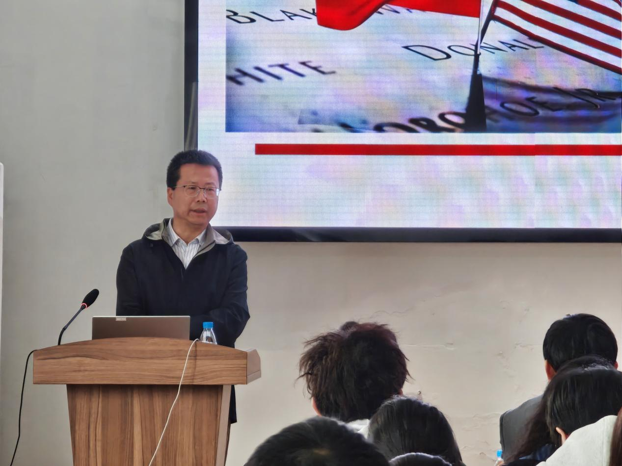 课程围绕新时代中国周边工作新成就、中国周边工作面临的新形势和努力开创周边工作新局面三个维度展开系统阐述。授课过程中,何湘江结合丰富实例,深入浅出地剖析了中国高度重视周边外交、始终将周边置于外交全局首要位置的战略意义。他指出,党的十八大以来,我国提出并践行亲诚惠容周边外交理念,推动周边工作实现历史性成就与变革。在当前周边形势更趋复杂的大背景下,中央周边工作会议为下一步工作指明方向,提出了科学指引。在讲课中他强调当代大学生要不断筑牢家国情怀,在深入理解国情与世情的基础上,坚定理想信念,增强使命担当。